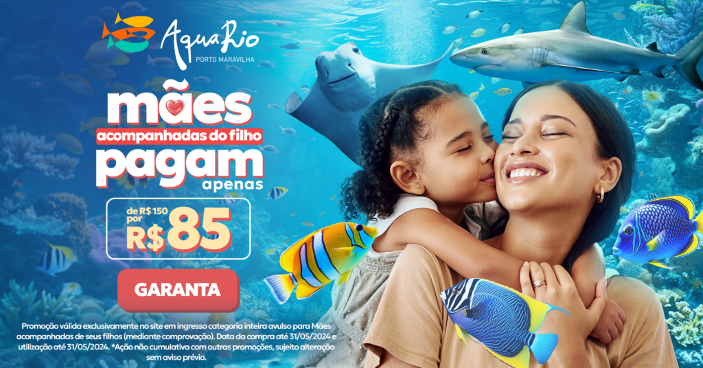 Oferta Especial: Mães têm ingresso com desconto especial de R$150 por apenas R$85 para visitar o AquaRio acompanhadas de um filho (mediante comprovação).